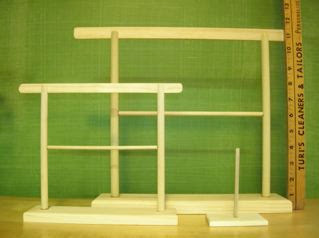 The Nimble Needle has been working with the same woodworker employed by the original owners of Lee Needlearts for providing kimono stands in all of the four sizes. The only difference is at this point I am selling them with a smooth sanded surface paint ready. The cost of the stands are: $40. XLRG., $28. LRG, $20. MED, and $8 for the very smallest.