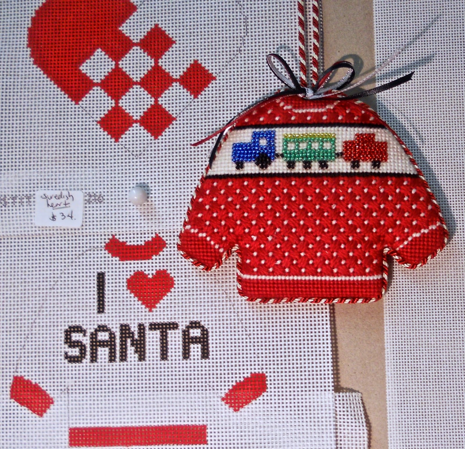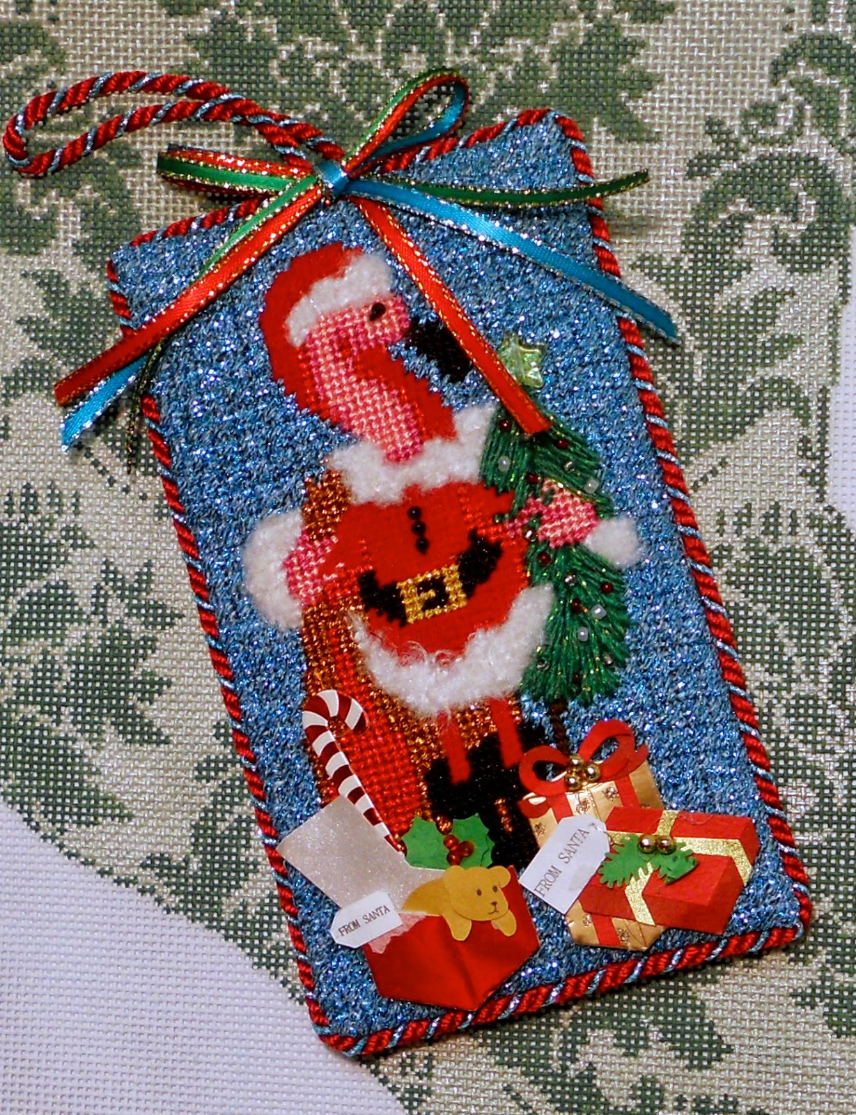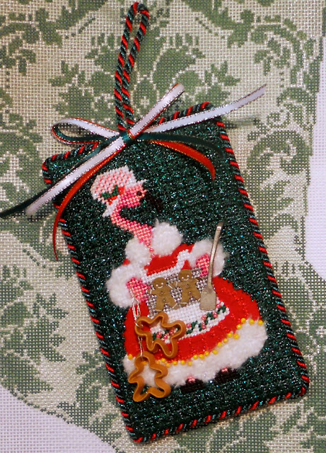 The Christmas finishing is picking up its pace. Two flamingo ornaments by Squigee and 3 adorable sweater ornaments by Stitch-its.