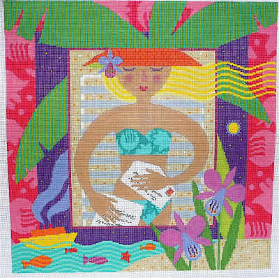 These just flew in today so in addition to my previous post I now have “Hootsy” the owl and best of all “Bon Voyage”. All the color, soaking in the sun and filled with dreamy thoughts contained in those love letters. And since we’re making this all up the letters can say anything we want to bring a smile to our face. I see lots of potential smiles stitching a piece like this. “Bon Voyage” $254.00 stitch painted with perfection. Hootsy 8″ x 9″ $74.00. As before, click the images to visit them in the web store.