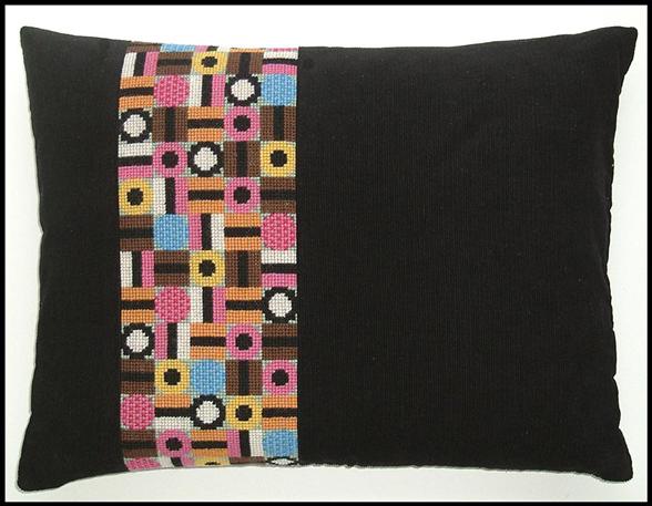 Licorice Allsorts to stitch! These are kits I can order for you. The round piece is “Licorice Gobelin Kit”. It measures 4.5 ” x 4.5″, it appears round does it not? $24. includes needlepoint canvas, danish “Flora” 100% wool and chart. Second piece measures 5″ x 14″ (pillow not included). This kit is $49. Both are done on canvas in a fine weight wool and are cross stitched, not tent or continental. Designed by Pelse AsboIf, kits come from Denmark. I wish they came with a supply of Allsorts for the life of the piece.