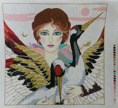 “Bird Lady” is a piece by an artist by the name of Clarice. 16″ x 16″ on 14 count, was $164.00 now just $125. Do her eyes look familar? Clarice is the artist that did many many women canvas designs now distributed through other publishers such as Lee Needlearts. Her eyes are unmistakable.