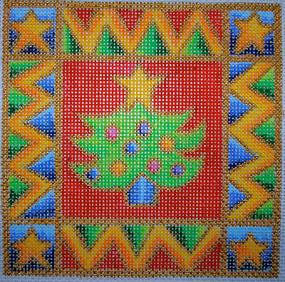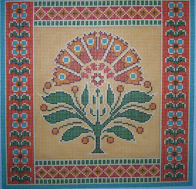The CanvasWorks Trunk Show has arrived! As always trunk show canvas’s are 20% including threads if bought for the piece. Canvasworks does not have a website so I will try to post as many as I can, I think they sent well over a 200 pieces. Their pieces are mostly geometric in nature, many reminiscent of oriental and turkish style rugs. Colors are saturated and rich and they are impeccably stitch painted. Collection includes pillows (14 x 14 and up), pillow inserts (under 14 x 14); several brick covers and more brick covers, belts, coaster sets, picture frames and a few rugs too. Pieces below are all on 13 count and price reflects 20% discount. Christmas tree 29.00, Turkoman 104.00 Venice 96.00. Shipping is free. Canvasworks lends itself to just about any thread depending on your preference but my first choice would be silk ‘n ivory or splendor, vineyards for those on 18 count. Metalics……Kreinik vintage gold comes to mind. I’m happy to select threads for anyone long distance.