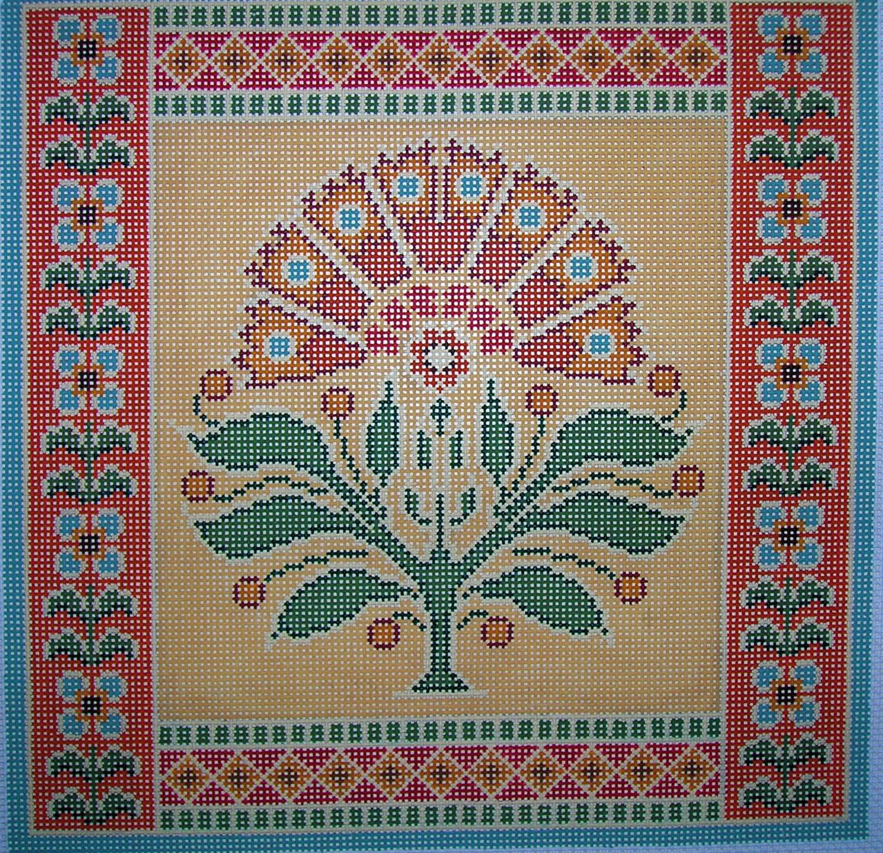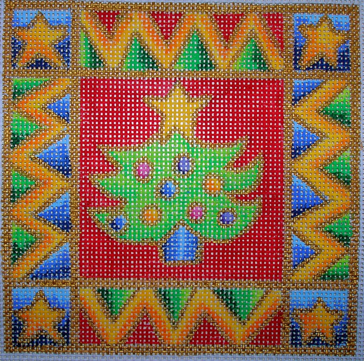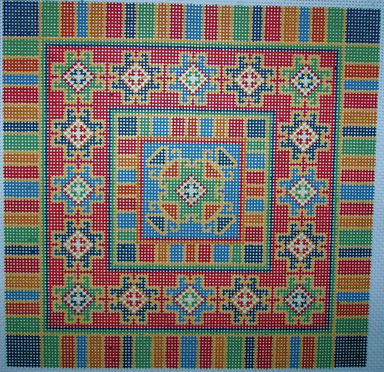The CanvasWorks Trunk Show has arrived! As always trunk show canvas’s are 20% including threads if bought for the piece. Canvasworks does not have a website so I will try to post as many as I can, I think they sent well over a 200 pieces. Their pieces are mostly geometric in nature, many reminiscent of oriental and turkish style rugs. Colors are saturated and rich and they are impeccably stitch painted. Collection includes pillows (14 x 14 and up), pillow inserts (under 14 x 14); several brick covers and more brick covers, belts, coaster sets, picture frames and a few rugs too. Pieces below are all on 13 count and price reflects 20% discount. Christmas tree 29.00, Turkoman 104.00 Venice 96.00. Shipping is free. Canvasworks lends itself to just about any thread depending on your preference but my first choice would be silk ‘n ivory or splendor, vineyards for those on 18 count. Metalics……Kreinik vintage gold comes to mind. I’m happy to select threads for anyone long distance.