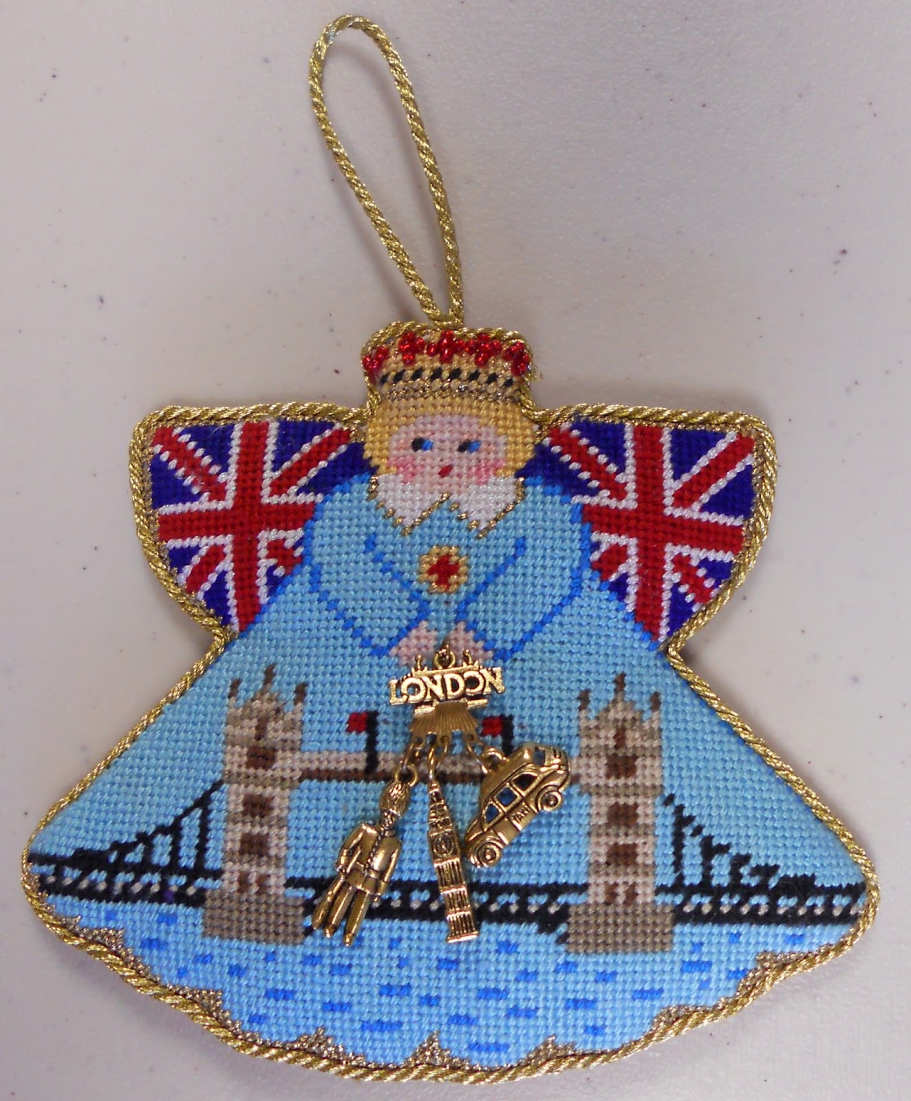 If you can zoom in you’ll see just how talented Kathy is. So many stitches used effectively without one overwhelming another. Cute santas are available from Lee Needlearts. The one on the right is available now, click on the title for more info.