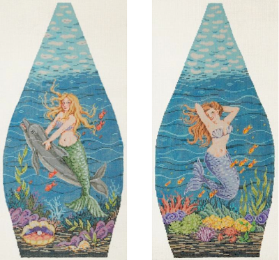 Just saw this new mermaid tuffet do to debut at the Phoenix show later this month. Mermaid lovers rejoice. Canvas cost $475.00, tuffet price $390.00. Approximate overall size of tuffet is 17″ diameter x 17″ height. Canvas is stitch painted on 18 count.