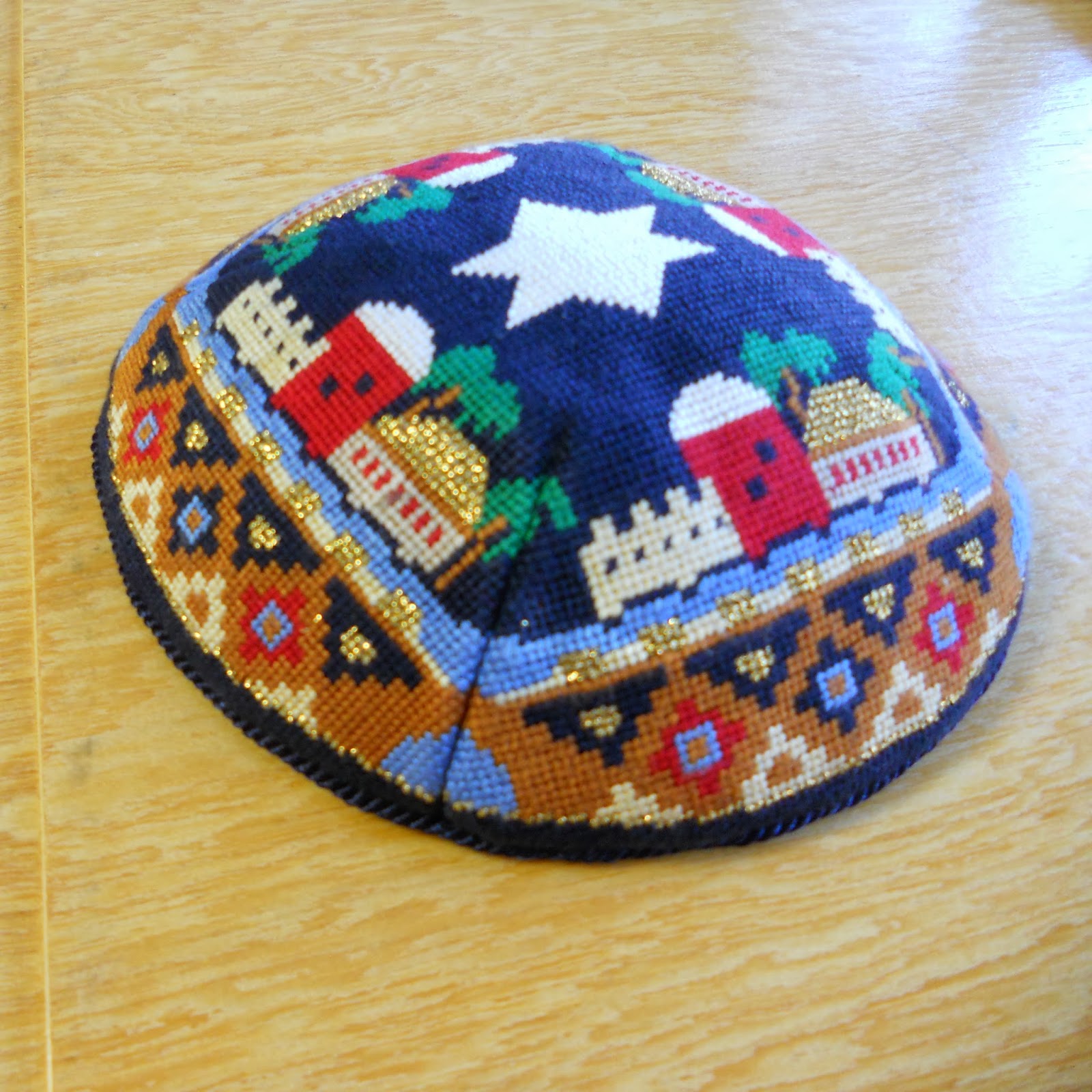 | Kippot by Lee Needle Arts, stitched by Lois |