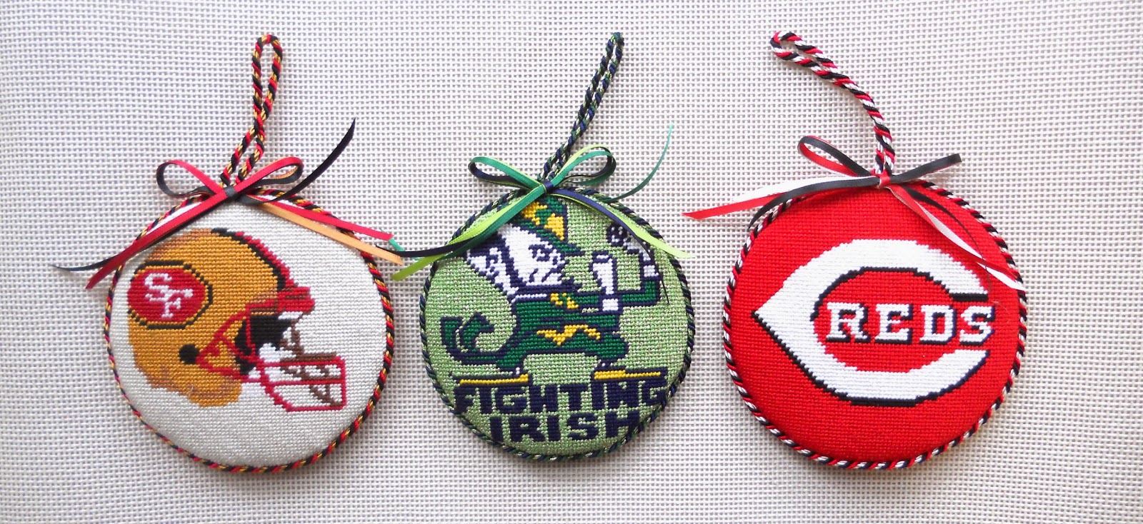 | Ornaments by Keep Your Pants On, stitched to perfection by Linda |