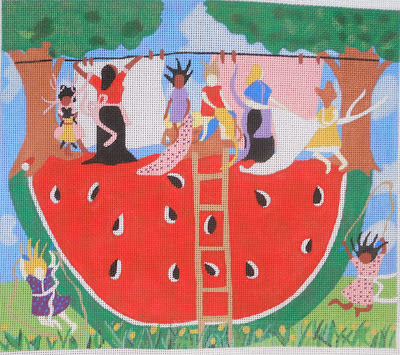 Maggie & Co. “Tall Watermelon” $99.00 Design area is 12″ x 14 on 13 count canvas. Artist Cheryl-Yvette Tutwiler.