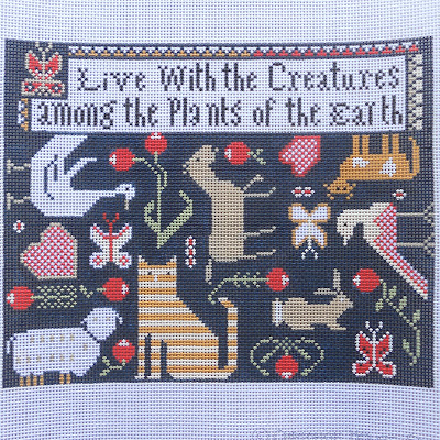 A few new canvases from Ewe and Eye. Some simple, sampler style, for those who are in teh mood for only basketweave and then the top two that beg for something more. I did get in one of my favorites Mighty Big Pumpkins but it sold in a day and never got to have its debut on the blog, sorry. Mark your calendars for the November Trunk Show of Ewe & Eye when everything from them will be 20% off. While I’m at it I decided to show below “Creatures” a few other E & E canvases that were currently for sale in my online shop. Click on the titles for more info.