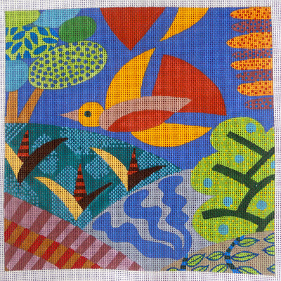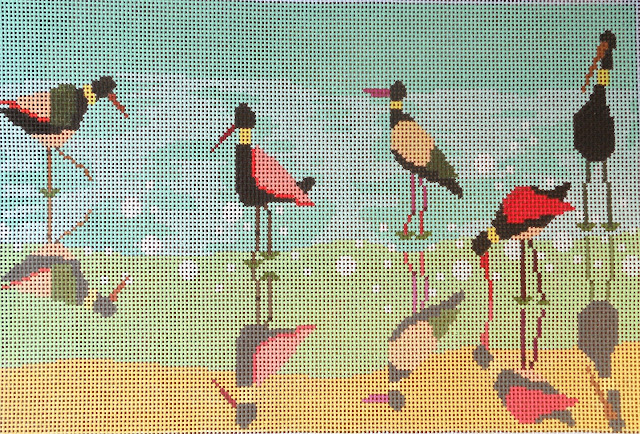 In the past few weeks I estimate atleast 60 new canvases have come in the door. I know I have a thing for birds but I didn’t know I ordered nine new bird canvases, enough to make a blog post. Here they are. The Gooney bird is a fav, as well as the Aborigine design, an Anne Jerlow design, and Shorebirds by Birds of a Feather.