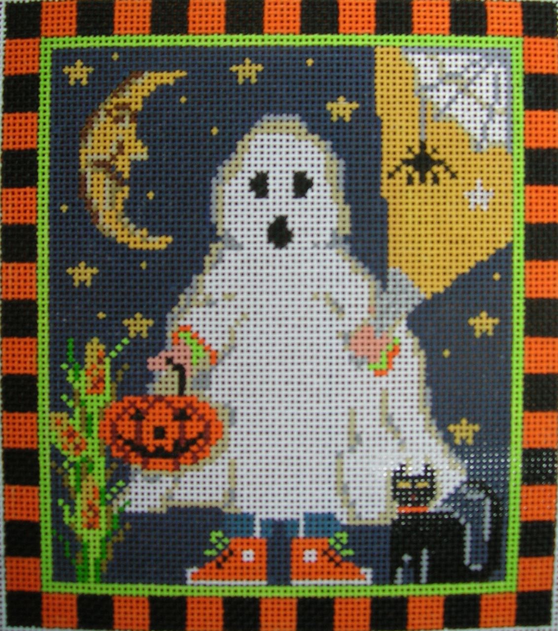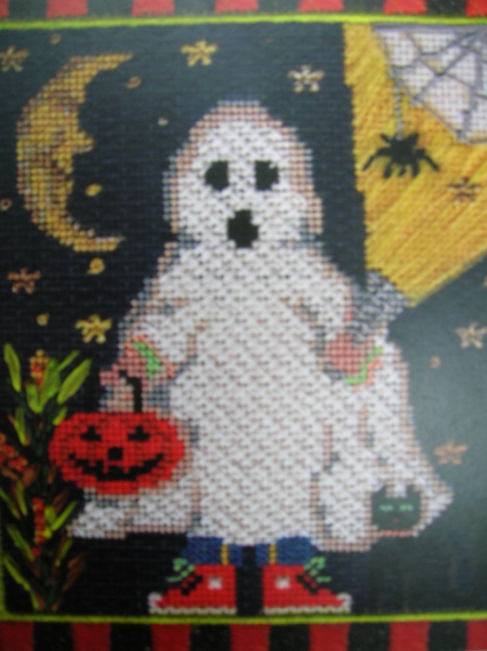 Kelly Clark’s Spooky Ghost, not too big that it will take long and not too small that it won’t make a statement. 7″ x 8″ on 13 count. $74. Stitch Guide 19.