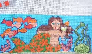 Mermaid tapestry by Sharon Cohen. 4 x 6 on 32 ct. also by Sharon Cohen are two lovely needlebooks in the shape of hats. Elizabethan Coif and