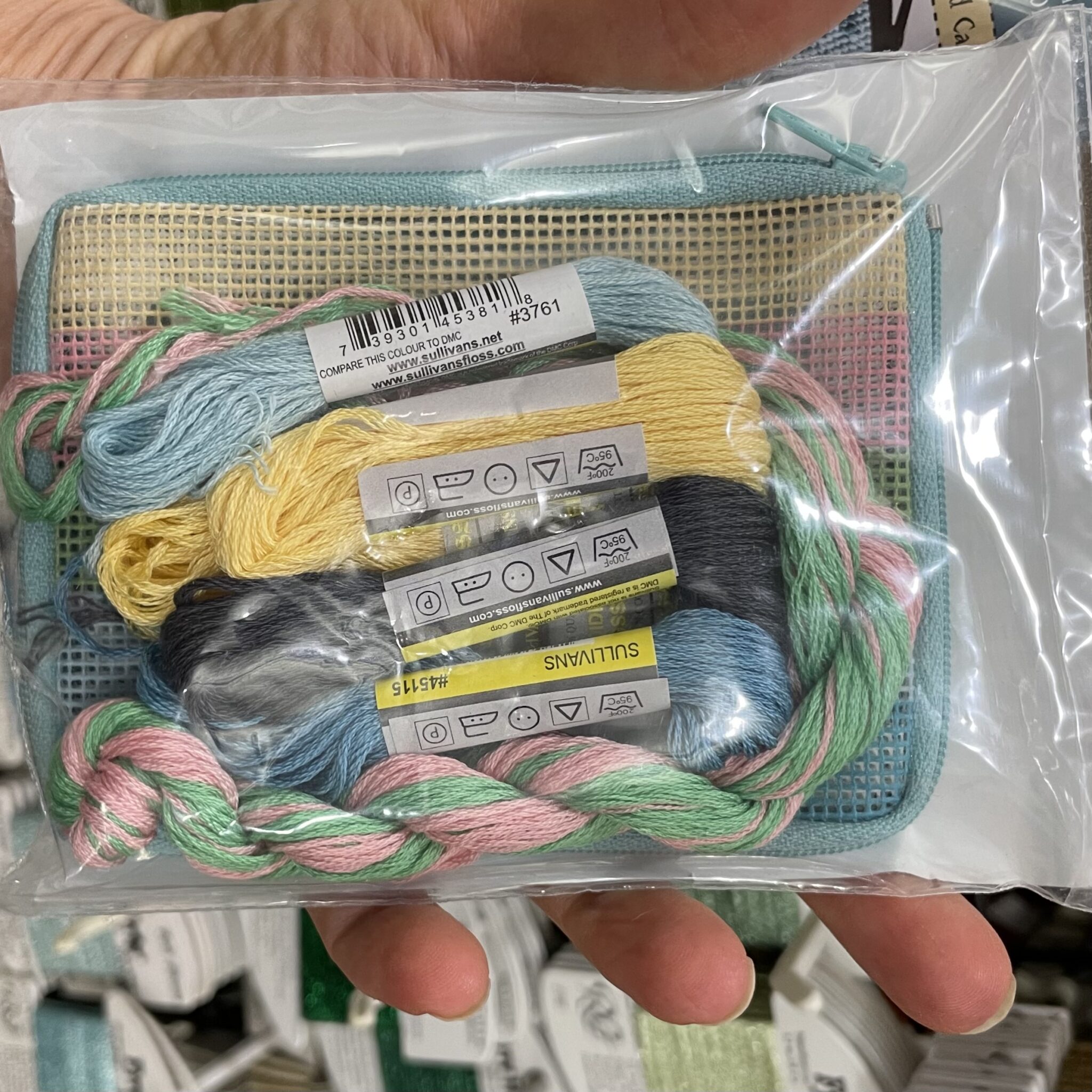 14 count cotton canvas with cotton embroidery thread. Needle and instructions, finished size 4 1/2″ x 3 1/4″. Pre assembled no finishing required, just stitch and it’s usable! Nylon zipper and fabric back. Kit includes cotton embroidery thread and alphabet chart.