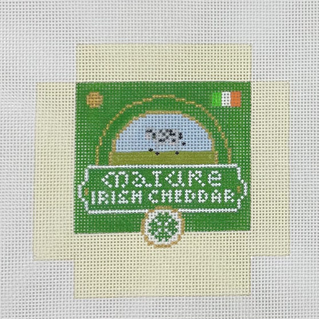18 count stitch painted Needlepoint Canvas. Once stitched and finished it becomes a three dimensional piece of wrapped cheese . Finished size 3″ x 3″ x 3/4″.