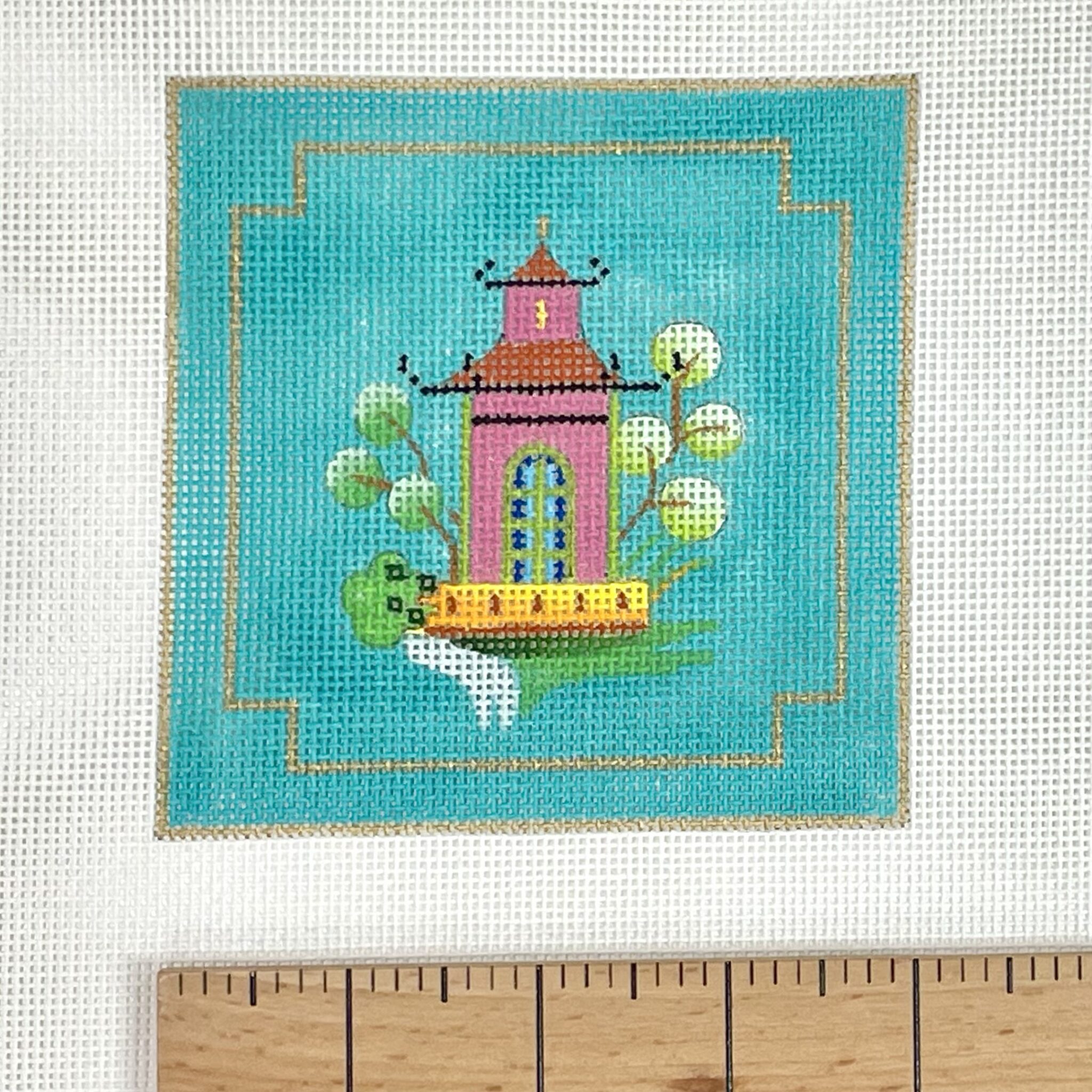 Design measures 4″ x 4″  hand painted on 18 count canvas.