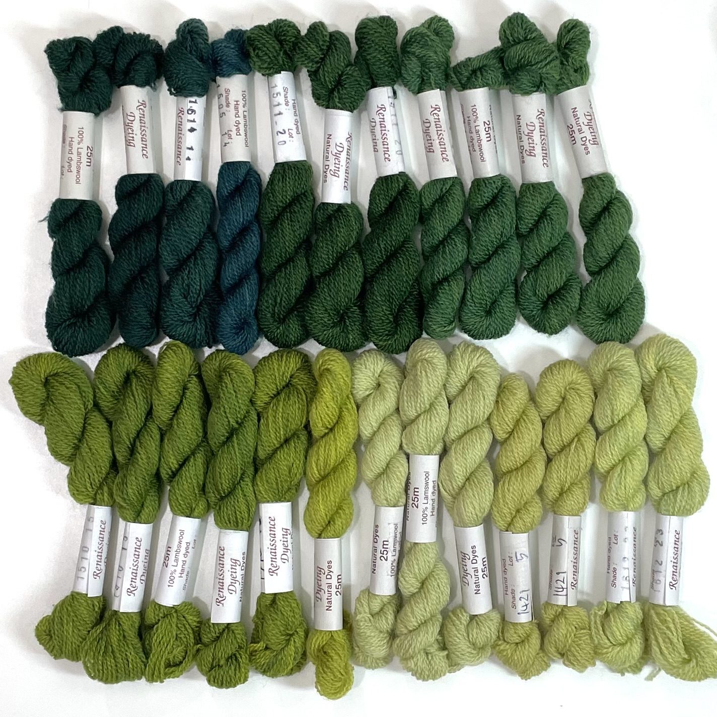 Includes 24 skeins of fine crewel weight lambswool.