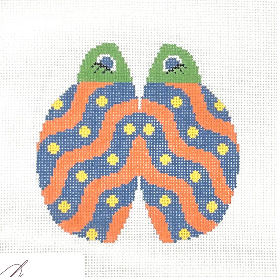 When completed becomes a dimensional ladybug that can be filled soft, or filled with shot to be used as a paperweight. Or for use as a pincushion, just ask the finisher to place a strong magnet beneath the needlepoint.
