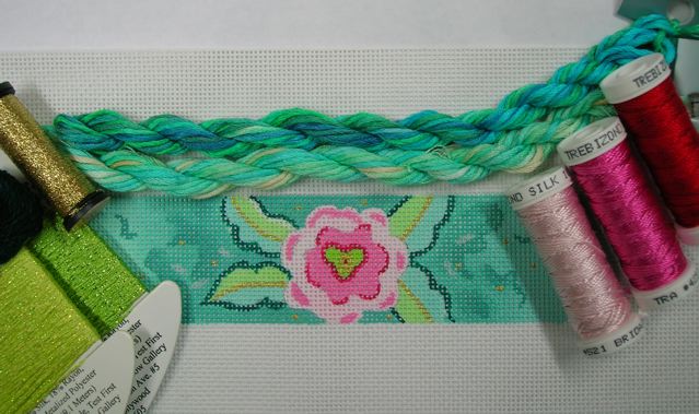 I really just love the colors in this Rose cuff by Julie Mar. I was asked by a customer to pull threads so while I’m at it I thought it was too pretty not to share. Julie Mar also has 4″ square coasters/box tops in the same color palette.